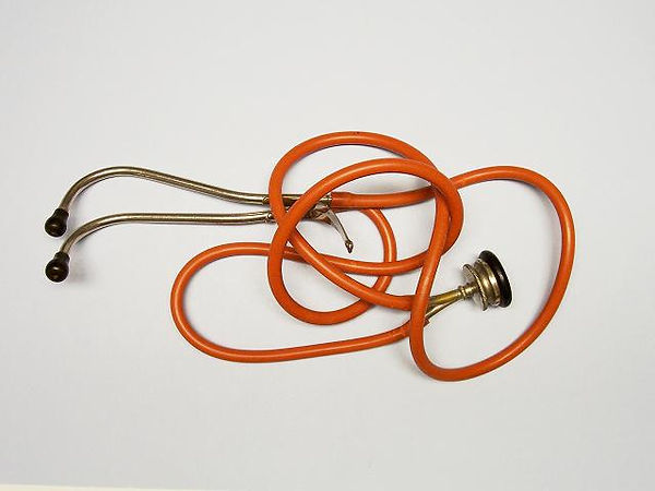 This Oertel model stethoscope was used in the 1920s by the Dutch physician L.M.S. Lekkerkerker-De Jong in Hilversum, Holland. It has a folding binaural metal earpiece and the metal chest piece has an anti-chill rubber cushion but not a diaphragm.
